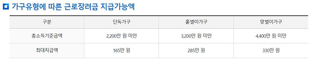 근로장려금 신청 자격을 확인해주세요.
